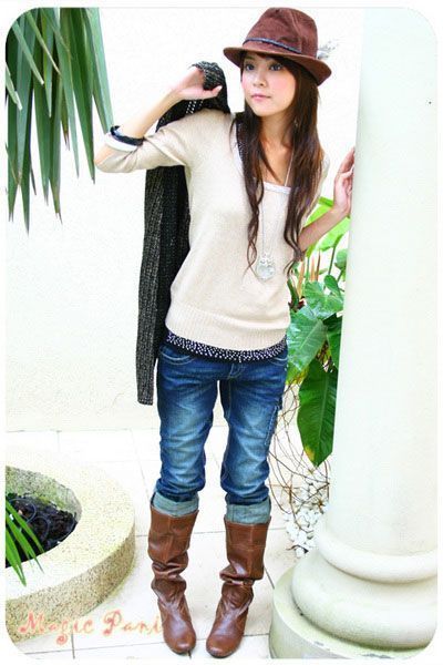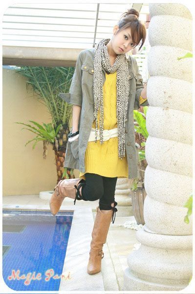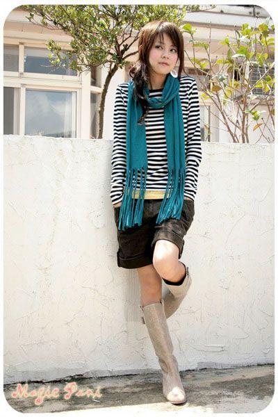 长款皮靴,超细围巾是初春流行单品。