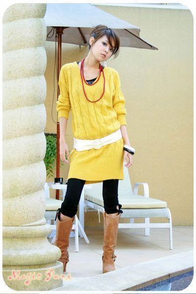 长款针织衫+腰带,好身材是这样搭配出来的。