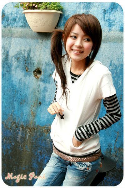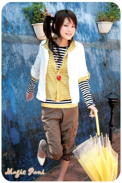 天气有些转暖,长袖棉T搭配小围巾来帮忙。