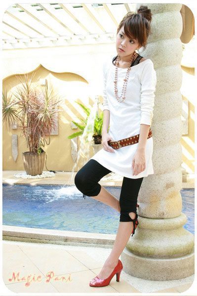 legging在换季十分,依然流行。红色高跟鞋,穿出魅力。