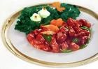 全鸡蛋12克,青椒10克,红椒0.25克,青辣椒1克,白醋5毫升,番茄酱11克,生粉7克
