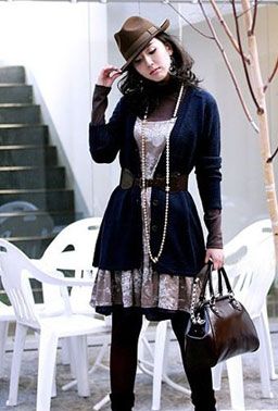今年流行的粗棒针织衫,尽管有很多实用的功能,但是更重要的是要让搭配不流俗。MM们大尅利用好胸前制造的V型领口,让甜美悄悄地流露。灰色大气的毛衣,大大的领口露出蕾丝,然淑女们即使到了三四十岁也不必为淑女埋单。