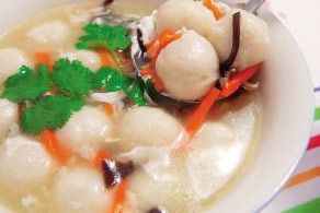 鱼丸(15粒)、香菇(5朵)、鸡蛋(2只)、鲜黑木耳(20克)、红萝卜(1/3只)、浓汤宝(32克)、葱(1根)、姜(2片)
