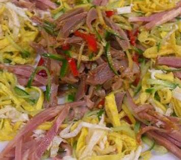 拌三丝的材料:黄瓜、鸡蛋、叉烧肉