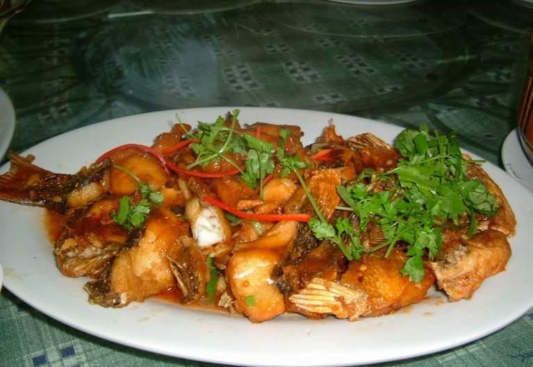 油温够了就可以小心把鱼放进去煎了,酱油不要放。注意头尾也要煎一下的,过一会儿一面差不多就可以小心翻面了,看看鱼皮是不是掉的好一点了呢?两面都差不多就可以开始把酱油倒进去了,从鱼身上淋下去就可以了,然后把切好的葱段放进去(鱼身上,香味让他渗透进去)就可以(如果是葱烤鲫鱼,就要很多很多葱了),然后就是糖了,也记得均匀的放在鱼身就可以了再加点水,盖上锅盖。等闷一会儿可以掀开尝下糖汁的味道,作一下调整。再盖一下,闷一下,糖汁差不多有点点稠就可以了。关火放点味精鸡精什么的就可以装盆了。