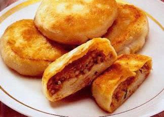作法 一、将材料一揉成面团,盖上湿布饧发20分钟。 二、将材料二拌匀成馅料。 三、饧好的面团分成8等份小块,每粒擀成圆片,包入馅料少许,捏拢再按扁成饼状。 四、平底锅内放2大匙油,再放入馅饼,盖上锅盖,小火煎10分钟,中途翻面一次,待上色并熟透即盛出。