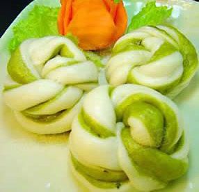 12.成型的花卷放在蒸架上,锅内放凉水开蒸。大火烧开后转中火共蒸20分钟即可。