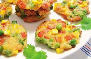 2.红椒去蒂和籽,切成细丁;火腿也切成细丁;洗净青豆和玉米粒,沥干水份烧开锅内的水,加入1汤匙盐,倒入青豆、玉米粒汆烫30秒,捞起沥干水