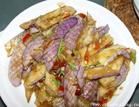 咸马哈鱼肉100克,茄子400克、毛豆仁3克,汤100克。