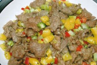 1、将黄牛肉去筋膜,切成 0.2 厘米厚的片,加嫩肉粉、酱油、精盐、味精、鸡蛋清、湿淀粉码味上浆。