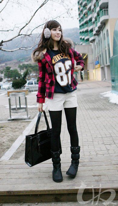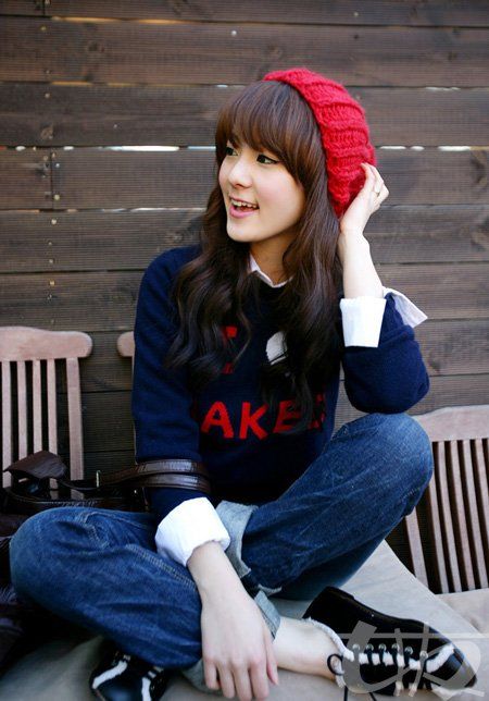 搭配点评:学院派的简洁搭配,加上一顶鲜艳色彩的毛线帽子,让你完整释放青春活力。
