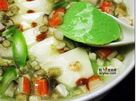 3. 青菜(油菜)留菜心,修去叶根,烫至碧绿,凉水冲凉;