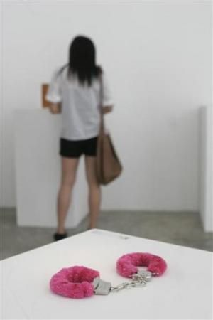 爱情手铐。每件展品旁边都有捐赠者写下的说明文字,解释此件展品的来源和意义。